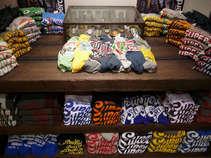 Mélangeant graphisme japonais et basiques américains aux accents britanniques, Superdry propose des collections à l’aspect délavé, produites en série limitées.