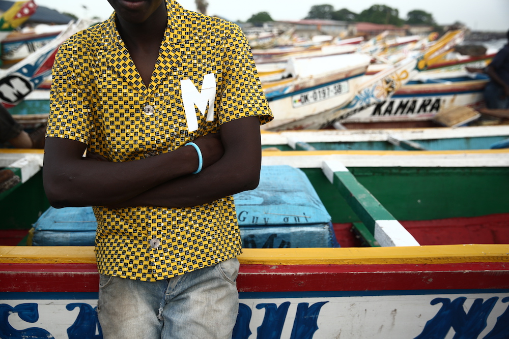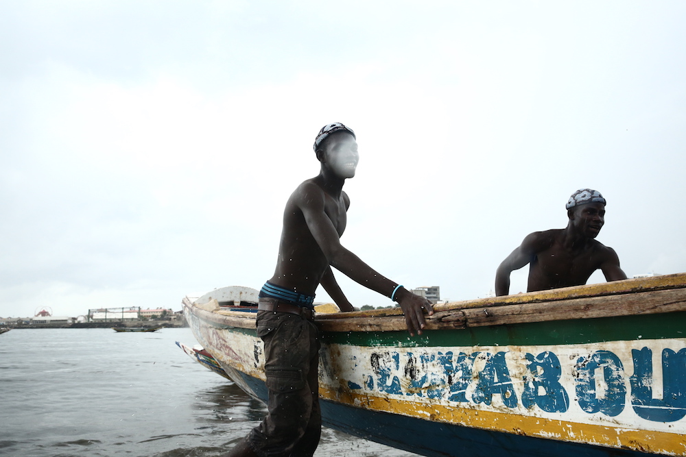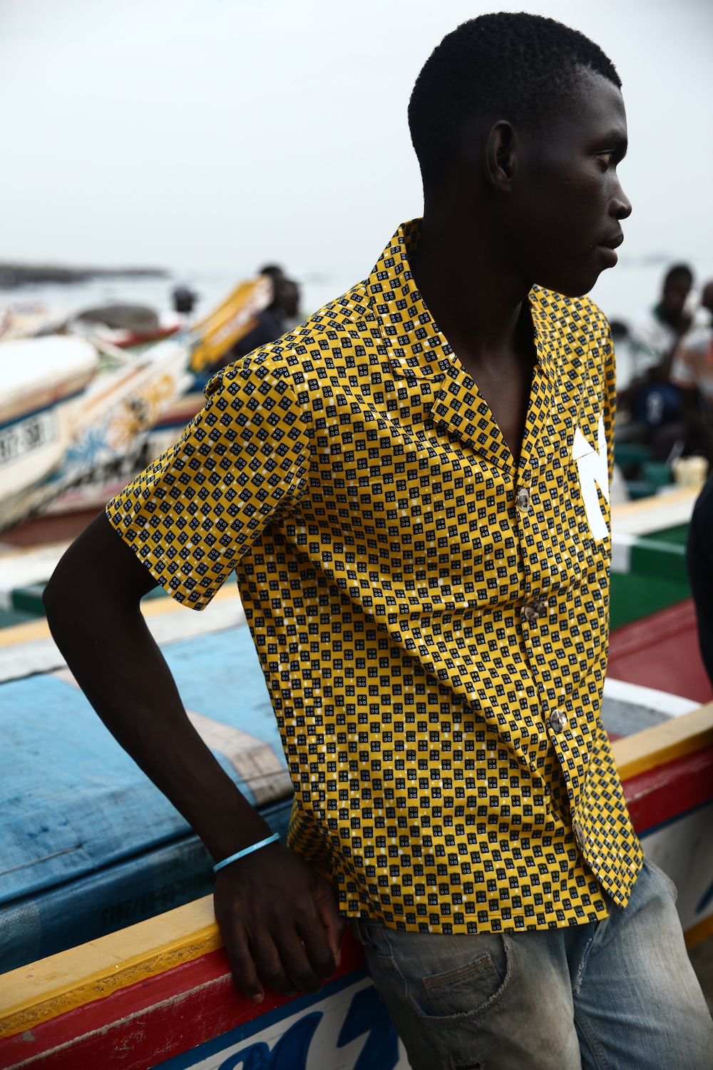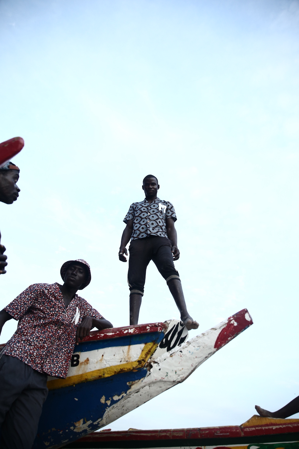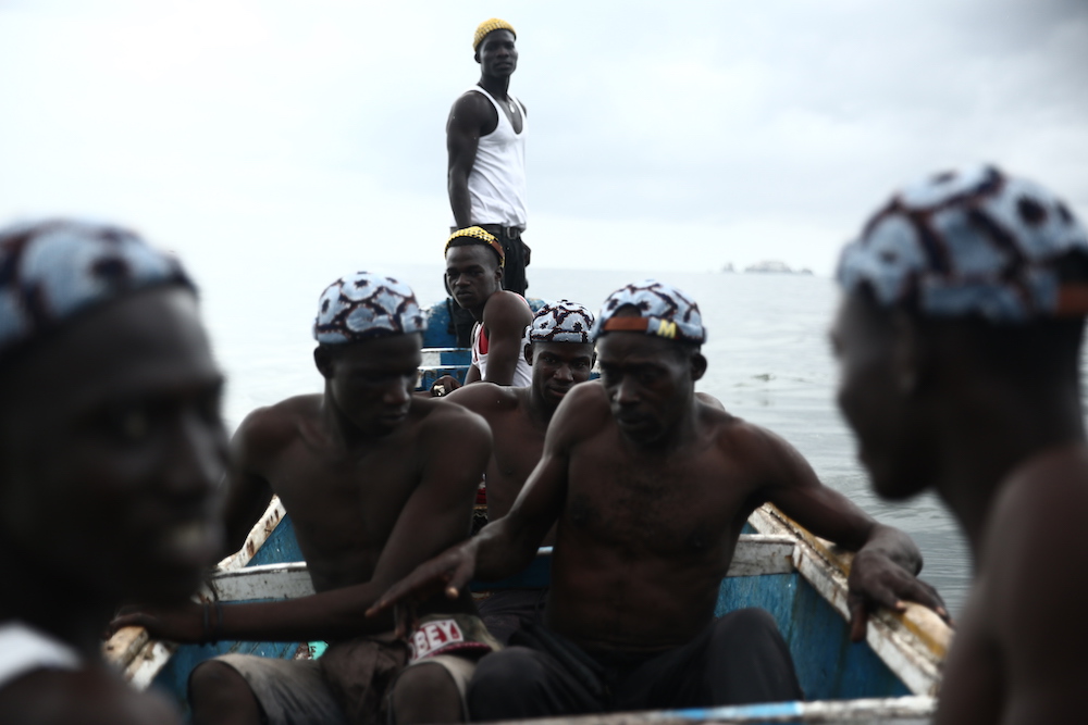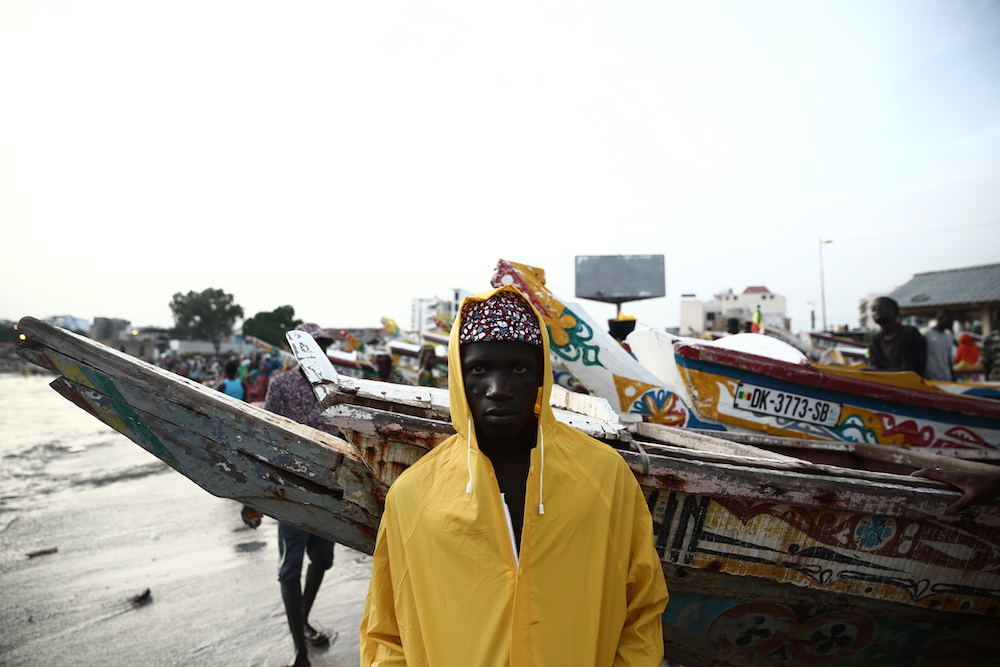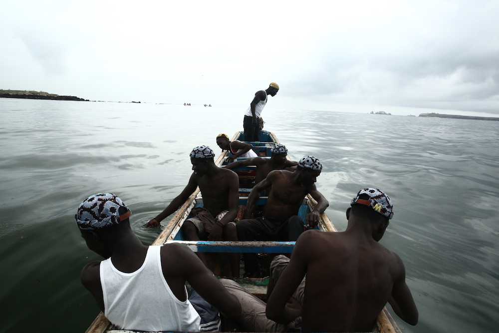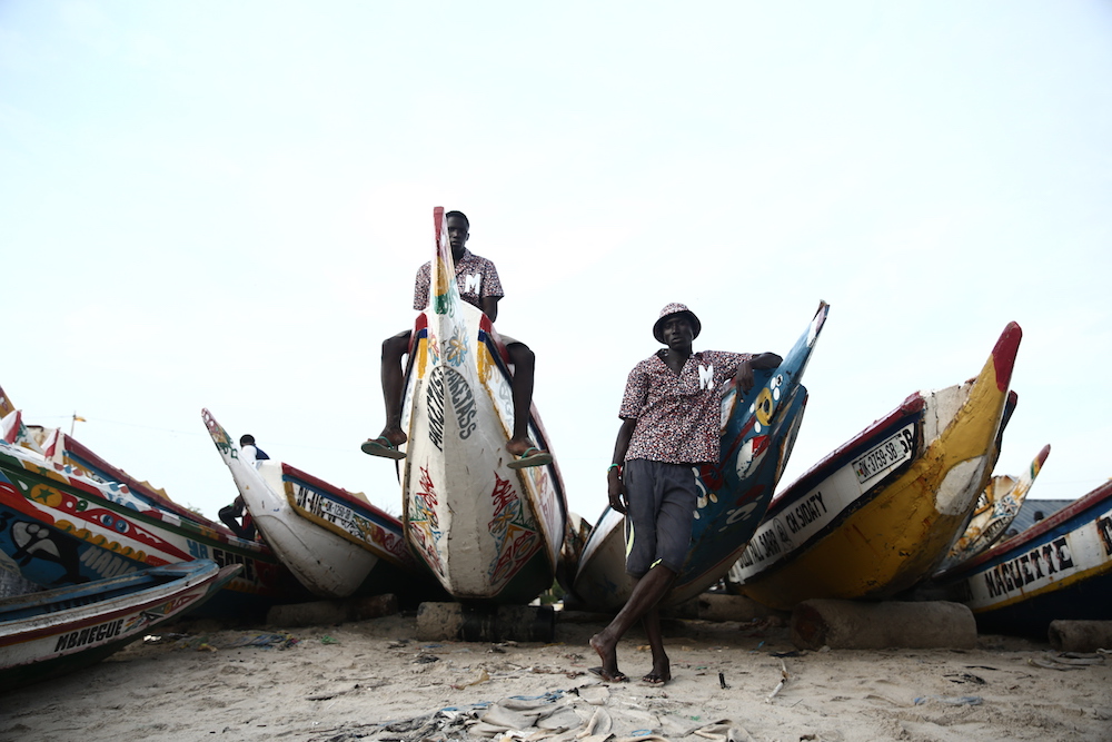 Cette expression singulière identifie les pêcheurs de Dakar qui traversent les côtes à bord de longues pirogues colorées, décorées de motifs religieux, symboles de leur culture et croyance.