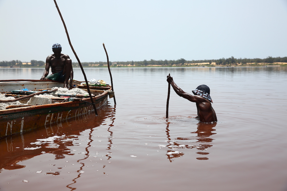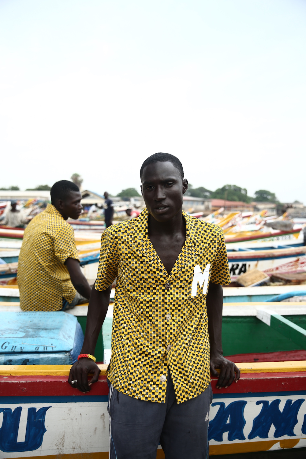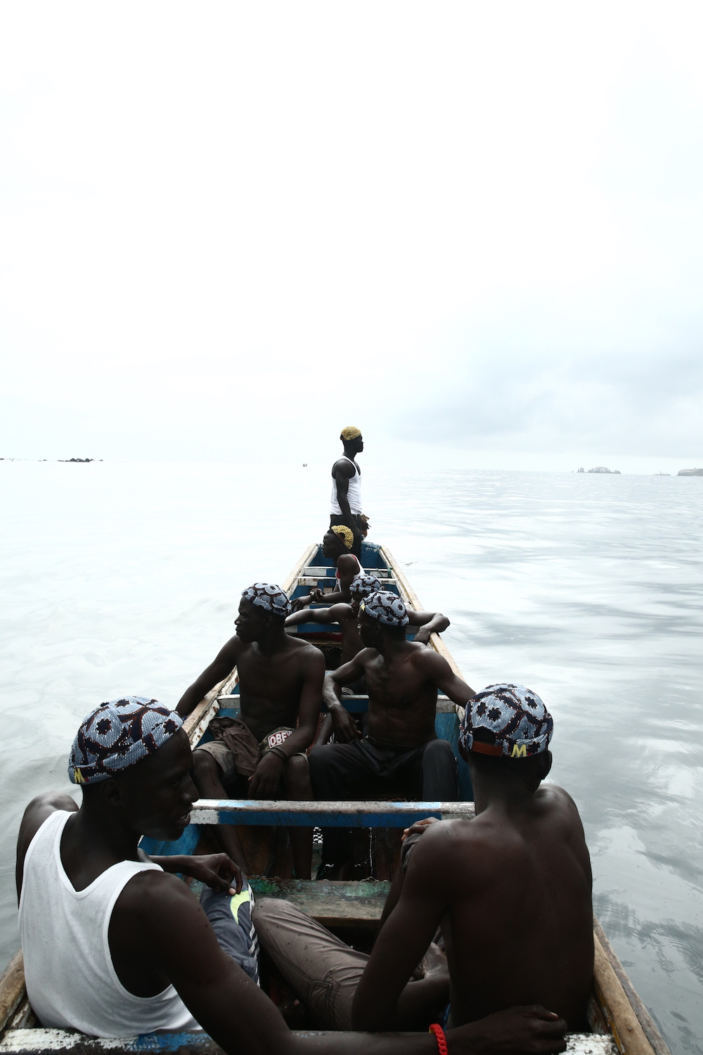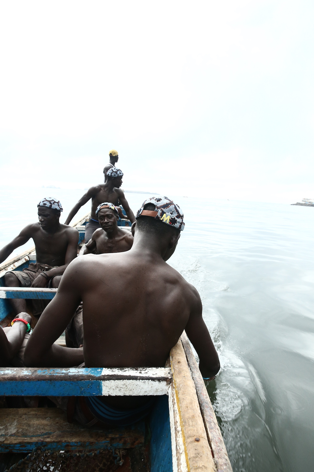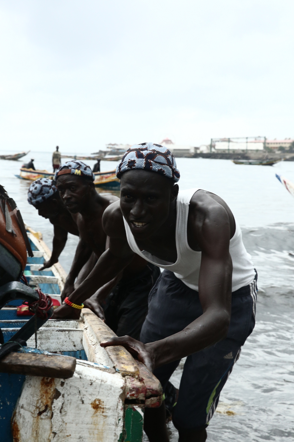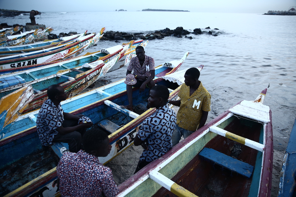 Cette expression singulière identifie les pêcheurs de Dakar qui traversent les côtes à bord de longues pirogues colorées, décorées de motifs religieux, symboles de leur culture et croyance.