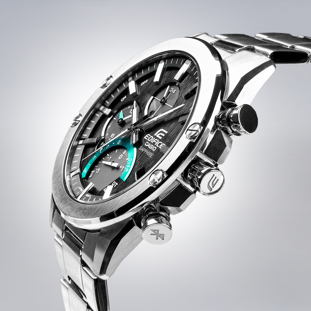 Le modèle EQB-1000D est également doté de fonctions pour mesurer le temps au tour sur un circuit automobile. Mais ce n’est pas tout. Le nouvel indicateur du dernier tour affiche la différence par rapport au temps au tour précédent avec une amplitude de moins cinq à plus une seconde. La montre affiche également un double fuseau horaire (heure mondiale). Couplée à un Smartphone via Bluetooth, elle garantit une heure précise et permet à l’utilisateur de sélectionner facilement la ville de son choix à partir de son Smartphone.