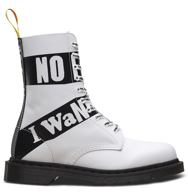 Inspirés par l’artwork iconique réalisé par Jamie Reid en collaboration avec les Sex Pistols, les modèles sont ornés des paroles du morceau Pretty Vacant. La tonalité noir et blanche de ces Dr. Martens est rehaussée par un rose neon et un jaune vibrant, qui soulignent l’aspect agité de cette éternelle attitude rebelle.