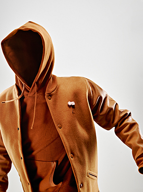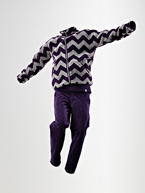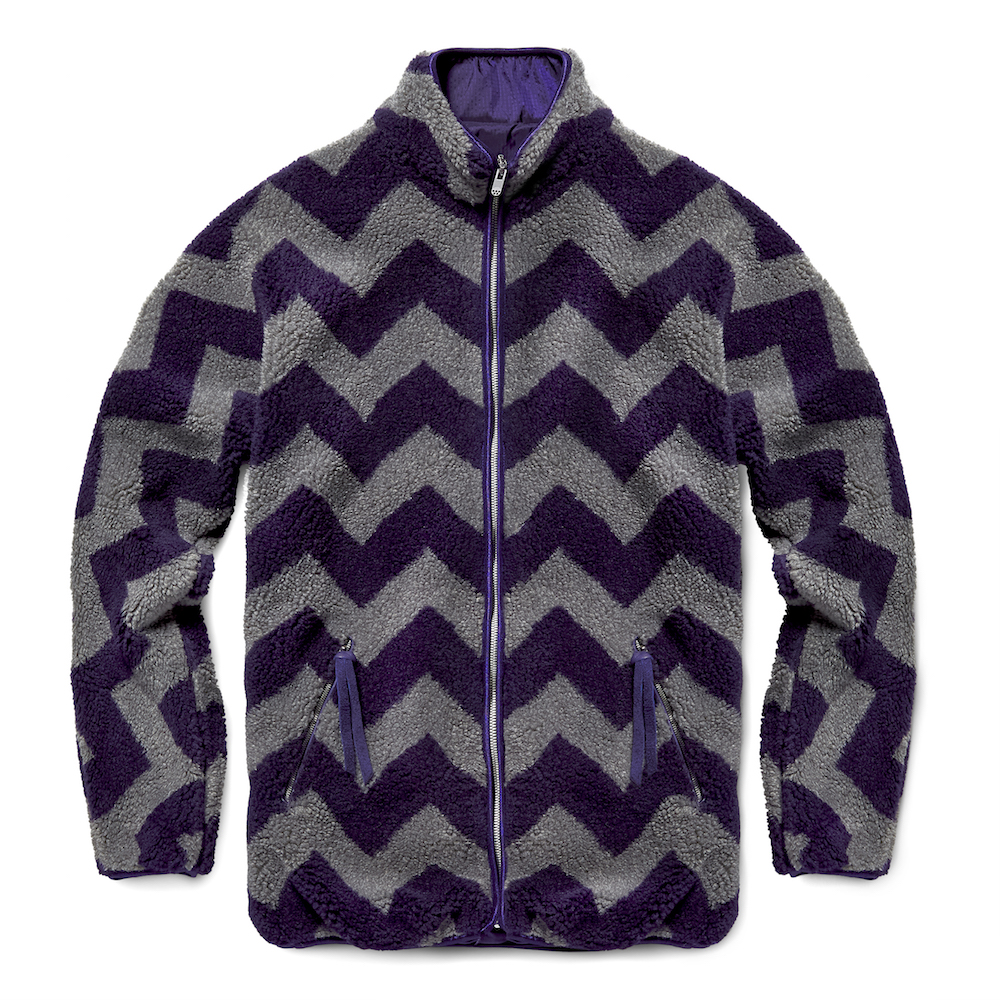 Confectionnée dans le molleton italien le plus raffiné, la MN Vest quant à elle revêt le motif chevron de la collection dans des tons gris et violet intense. Pourvue d’un cordon de serrage et de poches aux finitions cuir haut de gamme, elle se décline en version longue et sans manches.