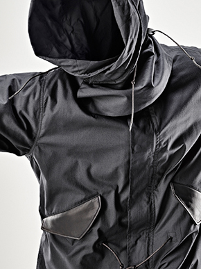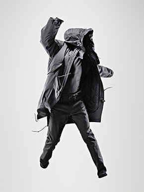 La MN Parka est l’illustration même du style structuré affectionné par Newson. S’inspirant de la M65 Fishtail Army Parka si chère aux mods anglais, elle est munie d’une capuche amovible traversée d’un fil métallique : on peut ainsi lui donner la forme que l’on veut, ou l’enlever complètement. De même, on peut retirer à sa guise la doublure de la parka capitonnée PrimaLoft. Parachevée d’éléments en métal argentés brossés et de quelques touches de cuir de mouton, ce basique de garde-robe est la sublime interprétation moderne d’une pièce emblématique.
