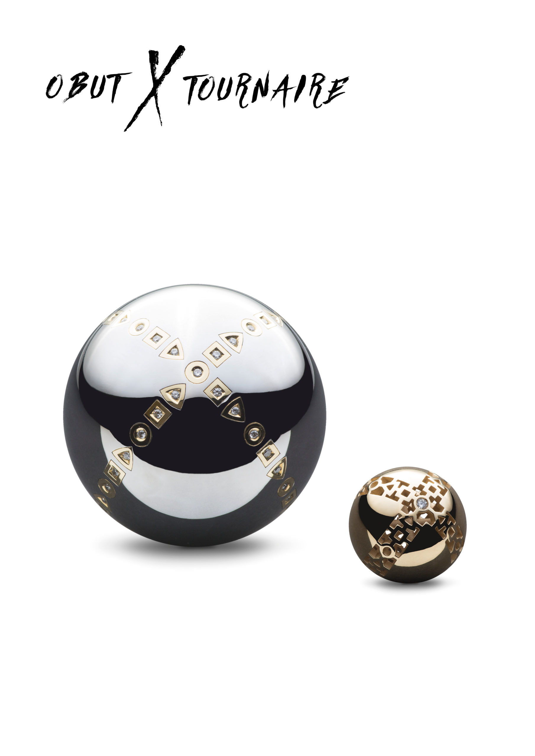 Fortes d’un historique familial et d’un savoir-faire mondialement reconnu, OBUT et la prestigieuse maison TOURNAIRE ont conçu une triplette ornée de 180 grammes d’or et sertie de plus de 12 carats de diamants, assortie d’un cochonnet en or de 55g serti de diamants.