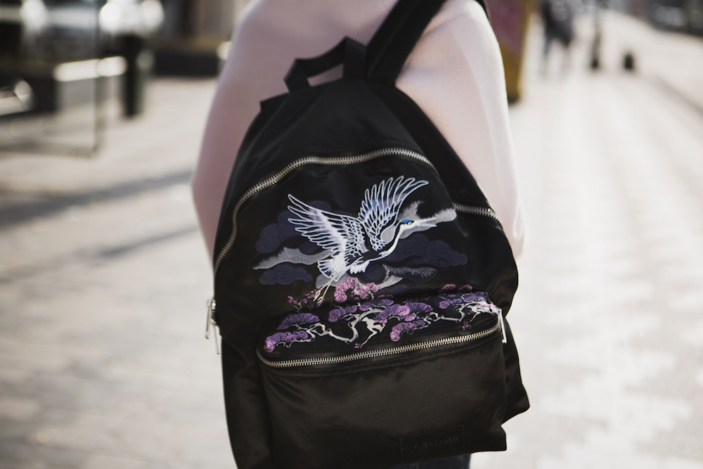 Pour sa dernière collection, Eastpak s’inspire de la tradition du “Sukajan” (“souvenir” en japonais) remonte à la deuxième guerre mondiale, lors de la période de l’après- guerre au Japon. À l’époque, les G.I. américains faisaient broder de larges motifs personnalisés sur leurs sacs et leurs vestes. Des dragons japonais (parfois chinois), des tigres, des cerisiers et des arbres en fleurs se retrouvaient alors aux côté de l’imagerie militaire américaine.
