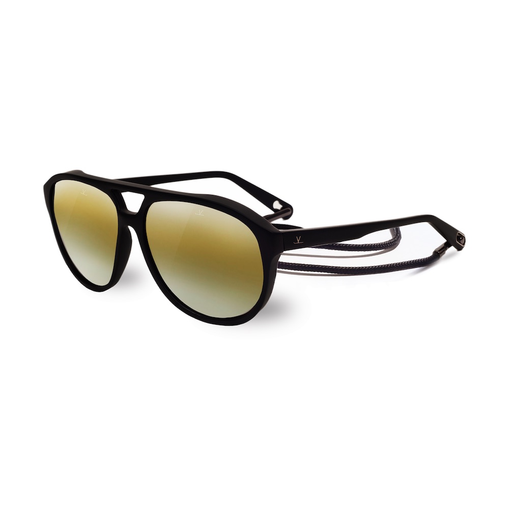 Pour la première fois, le poinçon d’authenticité « V sur ski » gravé sur chaque verre minéral Vuarnet est décliné en métal pour signer les montures à l’extrémité des branches.