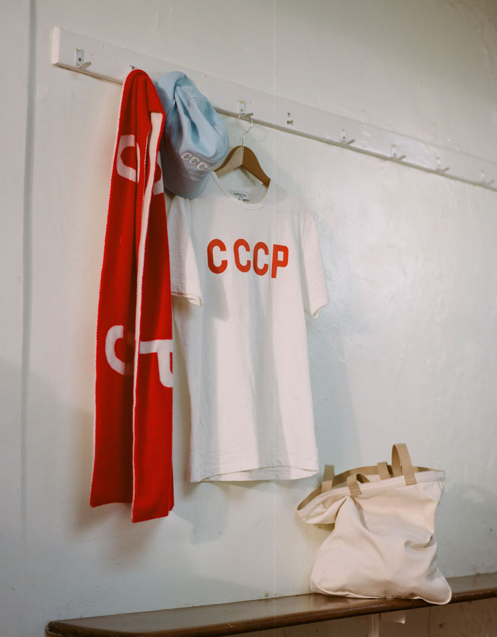 T-shirts, sweat-shirts, bonnets, bobs et écharpes se retrouvent tous floqués du fameux CCCP.