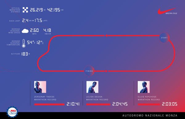 Afin d’atteindre leur objectif, les athlètes chaussés de Nike Zoom Vapor Elite avec semelle intermédiaire Nike ZoomX, se sont rabattus sur la Mecque de la vitesse pour s’entrainer dans des conditions optimales, une piste de formule 1 et par n’importe laquelle puisqu’il s’agit d’une boucle de 2,4 km du circuit de Monza.