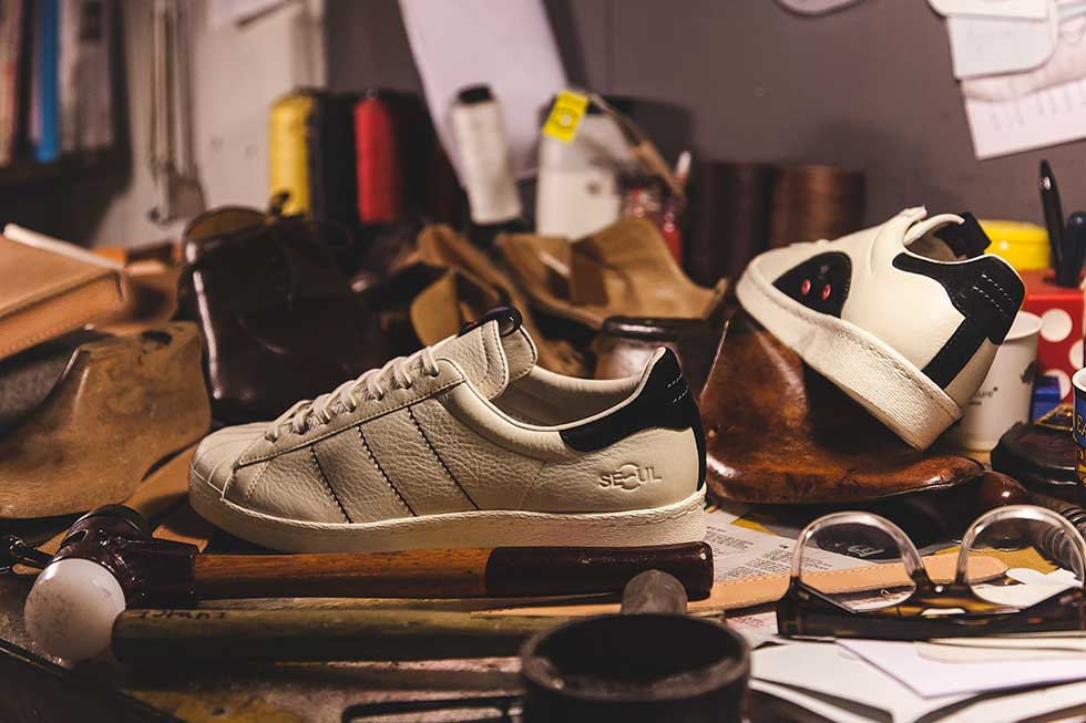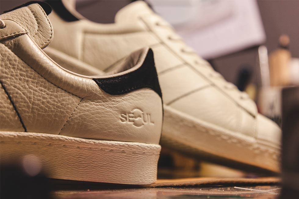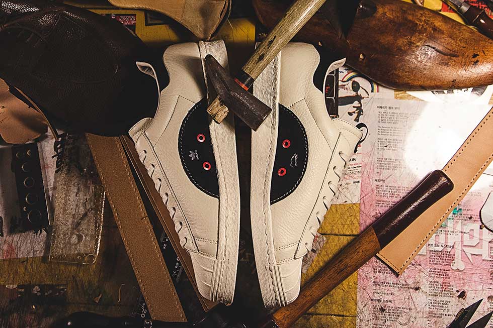 Séoul est une place forte de la mode et ses créateurs sont reconnus pour savoir mêler méthodes traditionnelles et styles contemporains. C’est le défi qu’a relevé Kasina en combinant la construction des chaussures de ville au classique du sport performance qu’est la Superstar. Kasina ré-interprete le modèle Superstar façon bottier que l’on retrouve dans les couleurs, les cuirs précieux, les bandes remplacées par les surpiqures et surtout le fait-à-la-main.
