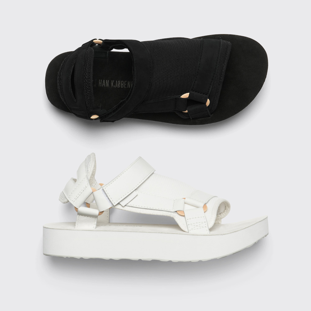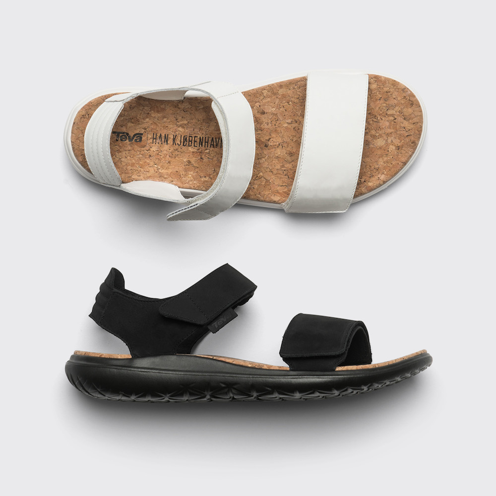 À la suite de la Fashion Week de Copenhague, où Teva a soutenu Han Kjobenhavn, les deux marques se sont associées pour créer une collection de chaussures reprenant tout ce qui fait la renommée mondiale du design danois, tout en incarnant les valeurs de Teva, a savoir une collection lʼesthétique minimaliste qui la caractérise, à travers des sandales compensées dotées de semelles en liège.