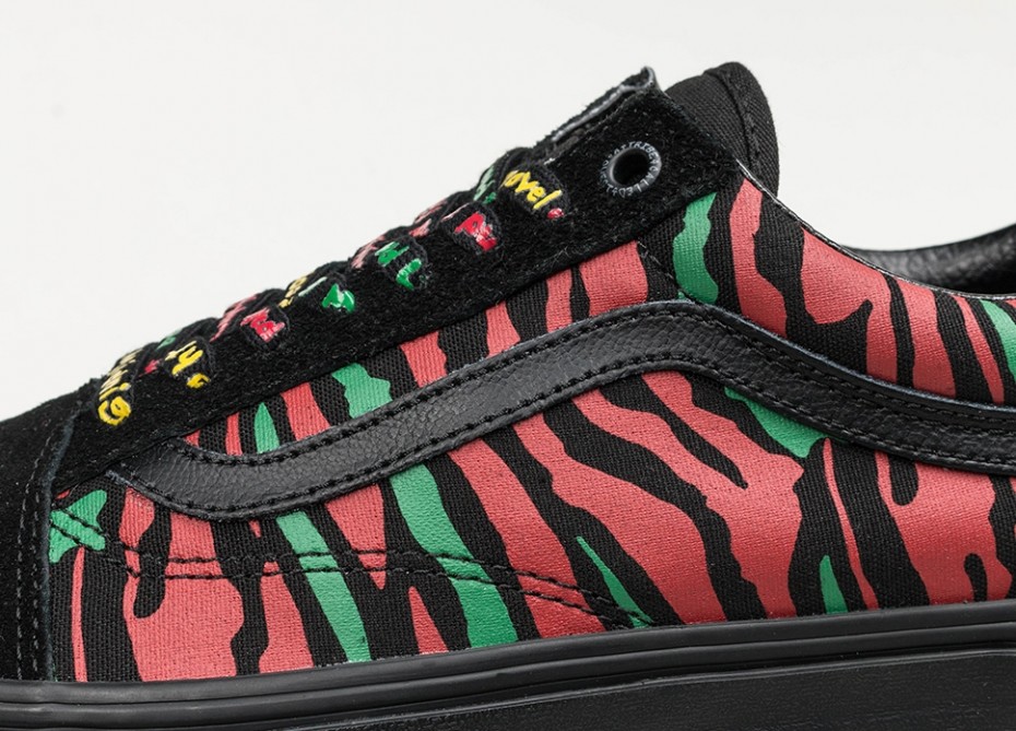 Pour les fans de A Tribe Called Quest, les designs des chaussures en disent long sur la discographie précieuse du groupe. La Slip-On met en avant la couverture de l’album de 2016 de A Tribe Called Quest, We Got It From Here… Thank You 4 Your Service, avec une broderie du titre de l’album, tandis que la Era offre une impression all-over représentant les couvertures d’albums s’étendant de 1990 à 2016. Basée sur l’artwork de l’album Anthology, l’interprétation du groupe de la Old Skool présente un coloris noir sur noir classique. La Sk8-Hi comporte plusieurs odes à leur morceau bien connu Bonita Applebaum avec l‘illustration d’albums et les textes imprimés sur les lacets, les panneaux latéraux et la doublure. La Authentic offre une interprétation vraiment spéciale en honorant la vie de feu Phife Dawg, décédé en 2015. Enfin, la version du groupe de la nouvelle silhouette Vans, UltraRange, est dotée d’une empeigne en cuir noir et de la Sidestripe rouge, ce qui offre du contraste.