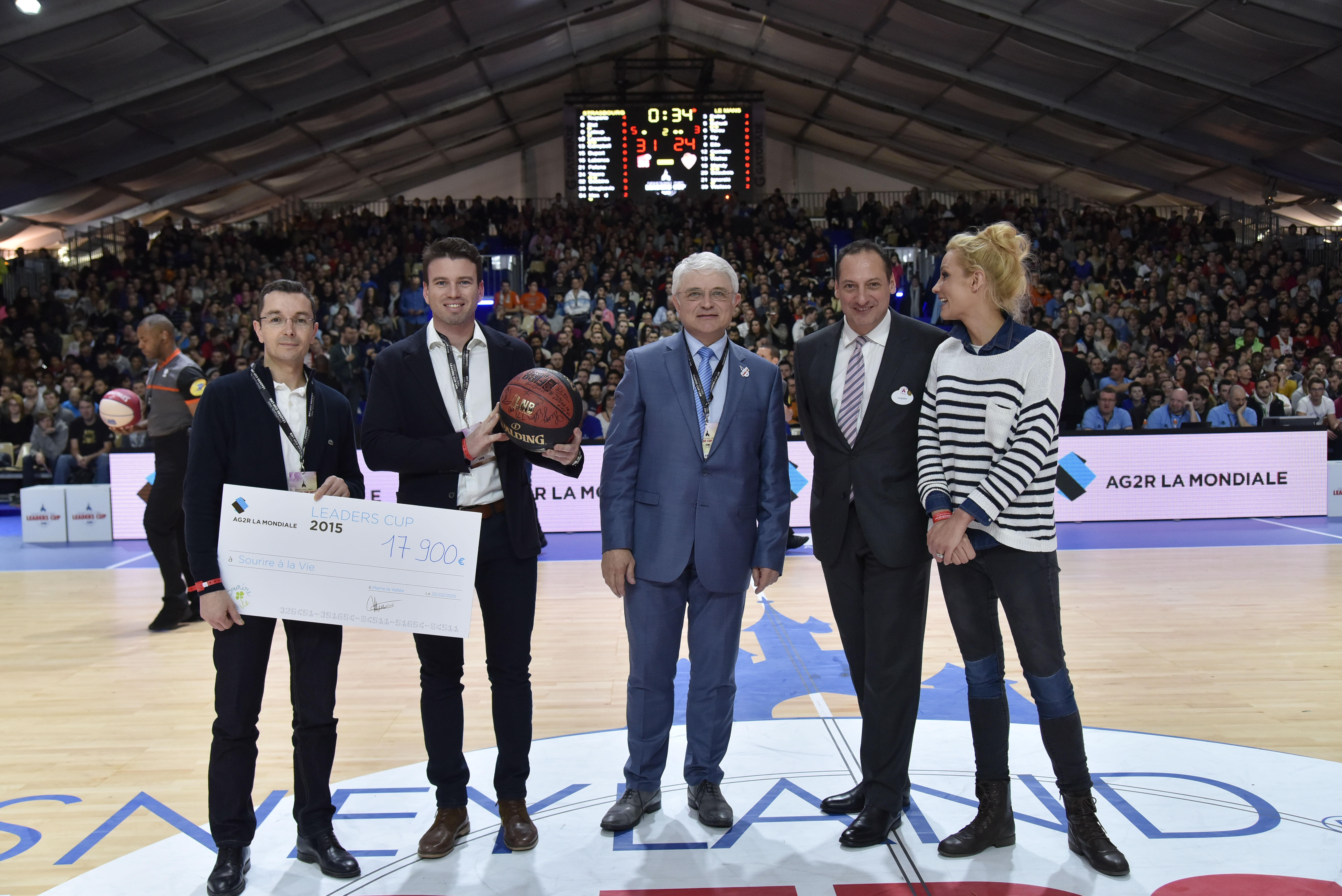 A cette occasion, plusieurs célébrités ont souhaité participer au défi solidaire d’AG2R LA MONDIALE en soutien à l’association Sourire à la vie. Réparties en deux équipes : l’équipe rouge composée de Laury Thilleman, son chéri (et mannequin) Nicolas Tesic, Maximilien N’Tary-Calaffard, Elisa Tovati, Jean Philippe Doux, et George Eddy s’est inclinée 53-79 face à l’équipe bleue coachée par Jacques Monclar, et composée d’Elodie Gossuin, de son mari Bertrand Lacherie, Norbert Tarayre, Cartman et Jérome Anthony.